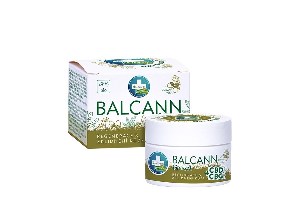 Balcann Bio mast je 100% přírodní konopná mast s dubovou kůrou a vysokou koncentrací kanabinoidů (600 mg CBD + 20 mg CBG). Je vhodná k pravidelné péči o suchou a podrážděnou pokožku se sklony k šupinatění, atopickému ekzému nebo lupénce. Mast dobře se roztírá, intenzivně vyživuje a mírní nepříjemné pocity napětí a svědění. Může přispět k rychlé obnově kožního pláště, který zabraňuje nežádoucímu vysychání pokožky. Každé aplikaci by mělo předcházet šetrné omytí a osušení pokožky.
