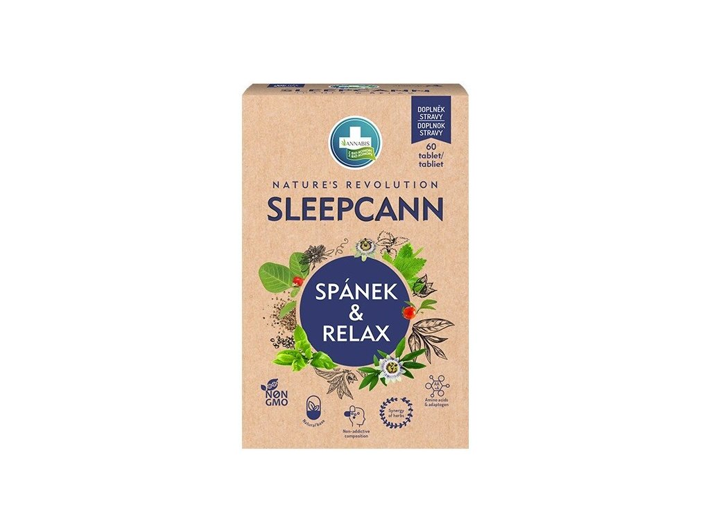 Sleepcann je doplněk stravy ve formě tablet s kombinací vitamínů a přírodních složek, která synergicky působí na nervový systém. Dlouhodobé užívání podporuje tvorbu melatoninu, přispívá k normální psychické činnosti, snížení hladiny kortizolu, zmírnění úzkosti a stresu, synchronizaci cirkadiánních rytmů a celkové fyziologické pohodě. Přípravek neobsahuje žádné návykové látky a je vhodný pro dlouhodobé užívání.